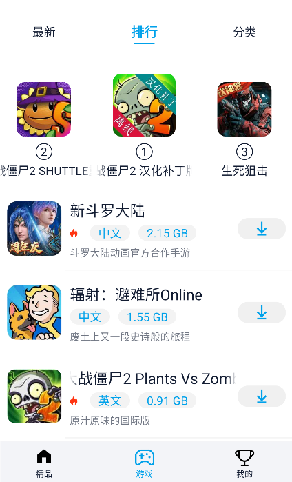 1、首先玩家打开【游戏】,在排行一栏中就能浏览到当下最火得植物大战僵尸国际服版本客户端。