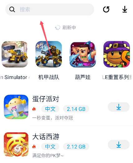 2、搜索:在顶部搜索框输入英文或者中文名,就能匹配到对应得游戏资源,点击进入游戏下载页。