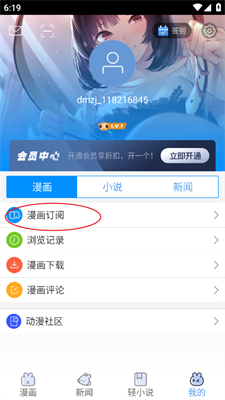 4、然后我们就能在【我的】-【漫画订阅】中找到刚刚订阅的漫画了。