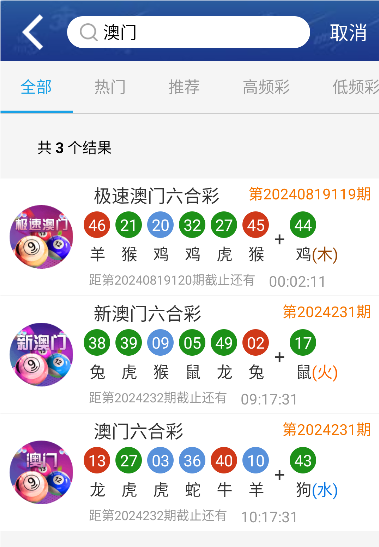 2、然后在顶部搜索框输入【澳门】,就能找到最新的澳门彩票玩法。
