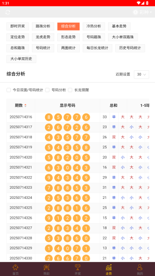 3、综合分析也能看到不同的数据,号码、综合、1-5球等等都有;