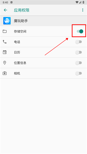 4、这里点击权限栏目,然后勾选存储空间即授权成功。