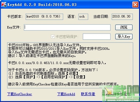 (1)本程序可以辅助卡巴2010/2011导入Key文件,同时支持卡巴2009。
