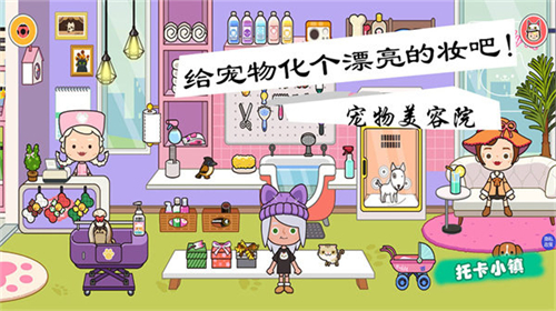 1、丰富的店铺:有各种各样的店铺,包括了宠物店、零食铺、水疗院和咖啡厅等等,每种商店都有各自独特的宠物玩法。