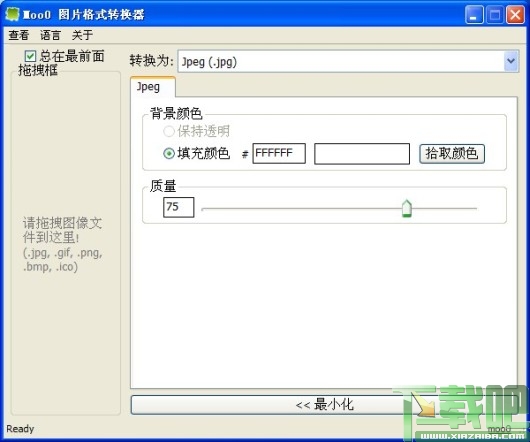 Moo0 Image Converter一个免费小巧的图片格式转换工具,支持jpg, gif, png, bmp,ico等格式。