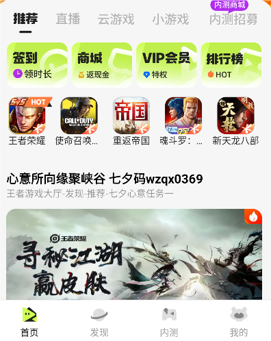 4、各种内测的游戏资格,让你可以抢先体验到各种最新游戏、体验服游戏版本等内容,快人一步。