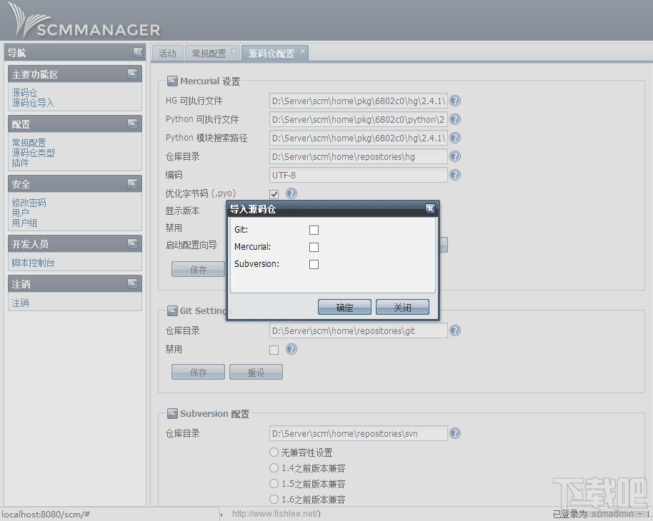 SCM Manager是一款同时支持Git、Subversion、Mercurial的源代码管理服务器,基于Java构建。相对于其他源码管理服务器,它具有如下优势:安装简单;无需手动配置,从web界面即可进行配置;无需任何WEB服务器和数据库支持;支持用户、用户组和权限控制;脱离第三方软件支持Git、Mercurial、HG和Subversion;全REST客户端API;友好的用户界面和简单的插件API;很多插件可用;BSD授权。