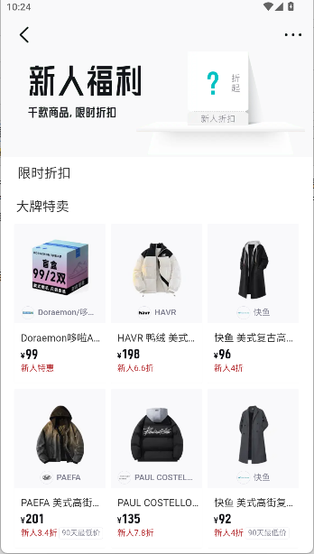 1.下载好软件之后,其中包含了非常多的福利,新人折扣。