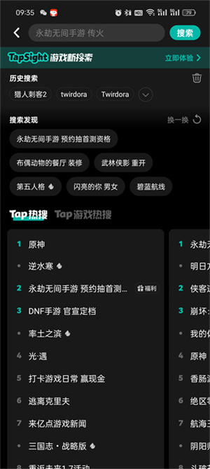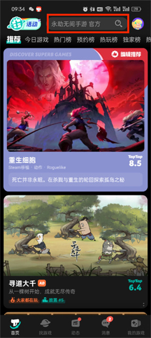 1、打开taptap软件,直接进入到首页中后可以查看到很多的游戏信息。