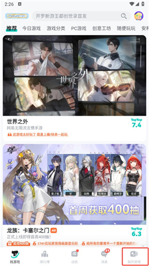1、打开taptap软件,进入到首页中后点击右下角的【我的游戏】。