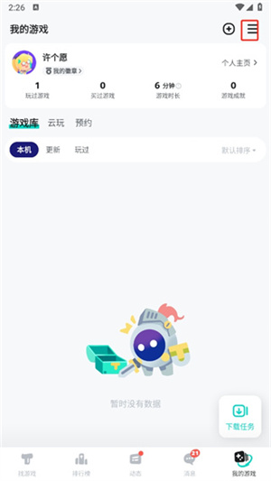 2、在我的游戏的页面中我们需要点击右上角的【三横图标】。