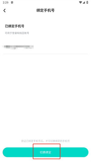6、来到绑定手机号的页面中点击下方的【切换绑定】验证一下,绑定新的手机号即可。