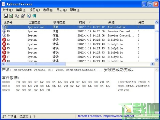 MyEventViewer是一个简单的小工具,可以用于替代标准的Windows事件查看器。相对Windows事件查看器来说,MyEventViewer允许你查看事件列表中的多个事件,以及在主窗口中会显示事件的描述和数据,而不用打开一个新窗口才能查看。此外,使用它您可以轻松地选择多个项目,然后将它们保存到网页/文字/ XML文件,或将它们复制到剪贴板中(Ctrl + C键),然后将他们粘贴到Excel。