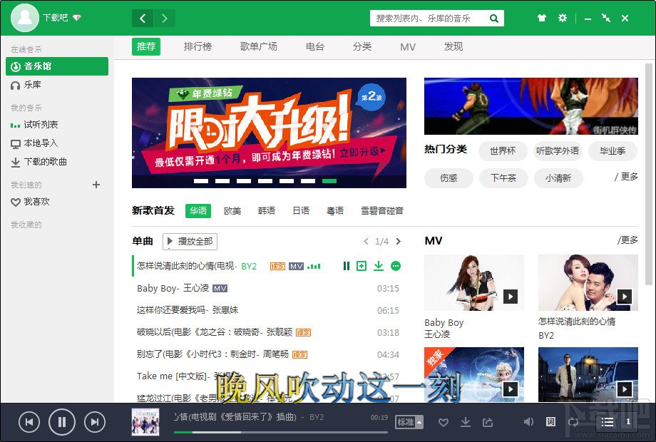列表向您推荐许多好歌,还可选择分类,轻松选出你的最爱