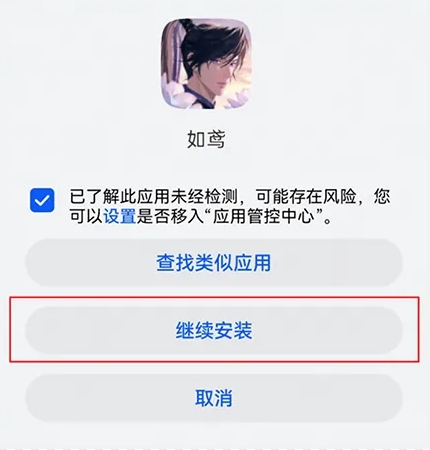 2、下载完成后进行安装,出现风险检测的提示时选择继续安装即可完成游戏安装。