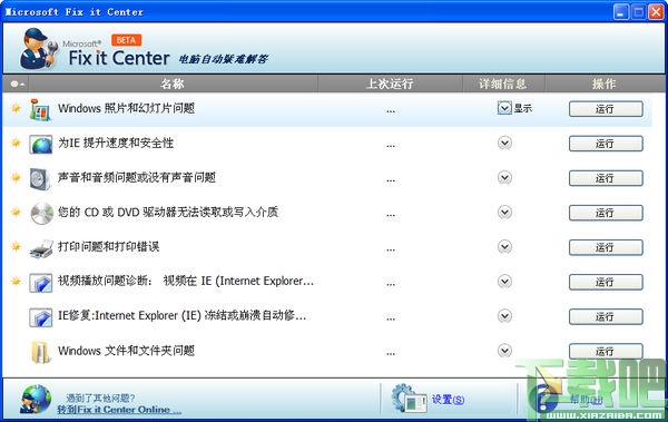 Microsoft Fix it Center是一款微软官方修复工具!系统难免会出现一些问题,微软官方发布了微软修复工具。Fix it Center会自动查找并修复多台普通PC及设备的故障。它同样通过主动检查已知问题和安装更新来防止出现新问题。将诊断和修复问题的多个步骤整合到一个自动工具中来为您服务。