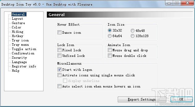 当鼠标指向桌面图标时,Desktop Icon Toy可以使图标跳动。它可以很容易的把我们的图标排列到屏幕的左边、右边、上边和下边。