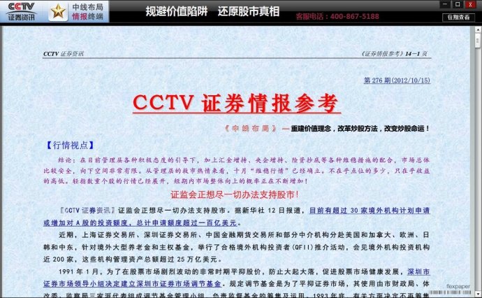 您手中的股票安全吗?中国股市20年,上市公司“财报地雷”横行肆虐,股民想要“理性投资、价值投资、长期投资”无所适从,面对股民恶劣的生存现状,CCTV证券资讯频道联合青岛大摩投资、商务部研究院信用评级与认证中心,集结了中国最优秀的财务专家、投资专家、媒体专家等方方面面的智慧,共同“为中国股市扫雷”,共建“中国放心股”平台-CCTV证券服务卡平台(特别援助版)