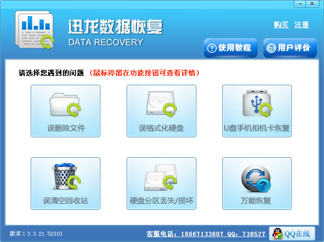 迅龙数据恢复软件(文件恢复大师)由迅龙工作室历时3年潜心开发的一款简洁、易用、快捷、安全的数据恢复软件,恢复率高达99.9%。迅龙数据恢复软件电脑版主要用于在误删除、误格式化、病毒破坏等情况下进行数据恢复,能够: