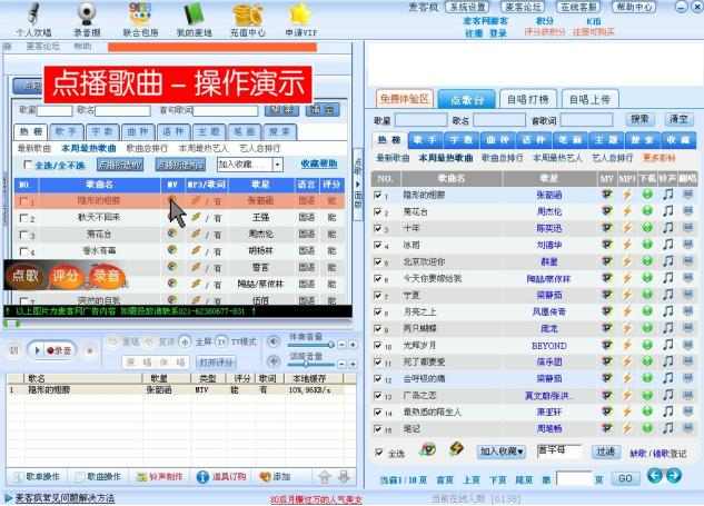 8.89 MB/2020-08-17麦客疯是一款简单易用的在线卡拉OK点播点唱软件(学唱歌软件)。麦客疯唱歌软件可以在线点歌,进行原唱和伴奏切换,麦客疯还可以听听别的用户唱歌情况,非常实用。十万首高清歌库,独家实时评分字幕,全新合唱功能。麦客疯唱歌软件特点个人欢唱:超级在线卡拉ok,