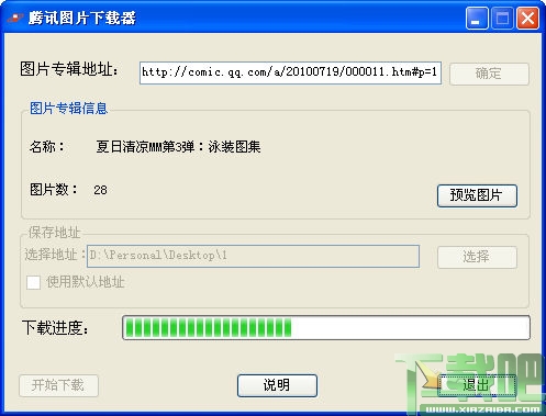 腾讯图片下载器使用方法:先在腾讯图库中http://comic.qq.com/pic/寻找喜欢的图片,将图集的地址复制到程序中,在选择保存地址就可以开始下载了。同时支持预览功能。