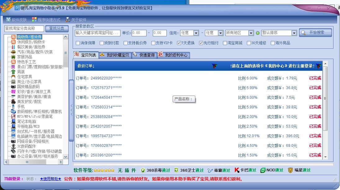 剑儿淘宝购物小助手是一款适用在淘宝网购物的小工具。剑儿淘宝购物小助手具有快递单号查询功能,提供淘宝网没有的排序方式,高级搜索,让你可以在淘宝网快速的找到自己喜欢的商品。