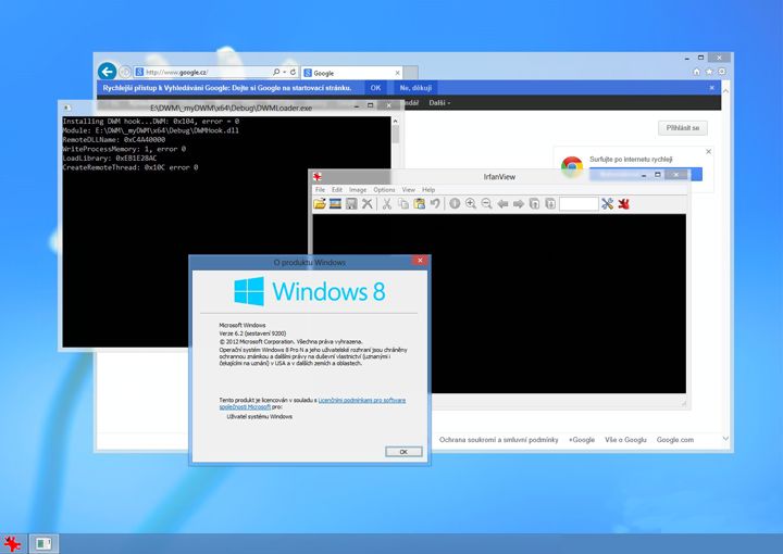 之前报道过微软某位UI工程师打算重新把 Win8 Aero Glass磨砂透明 效果给整出来,还放出了效果图,后来不知道什么原因没发布了。之后又有国外研究出Win8开启透明效果,但没有磨砂效果。国外码农继续给力,终于研究出Win8开启Aero磨砂透明效果的软件,原理是通过注入dwm.exe来实现Aero glass磨砂透明效果。