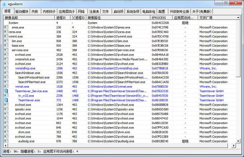 PC Hunter免费版是一款功能强大的Windows系统信息查看软件,同时也是一款强大的手工杀毒软件,用它不但可以查看各类系统信息,也可以揪出电脑中的潜伏的病毒木马。PC Hunter 是在原 XueTr 的基础上重新开发而来,XueTr 只支持 32 位操作系统,而 PC Hunter 不仅支持 32 位的 2000、XP、2003、Vista、2008、Win7、Win8,还支持 64 位的 Win7、Win8 系统!
