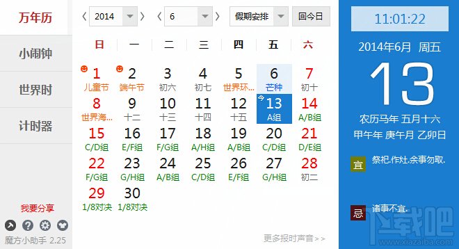 魔方小助手是个很有趣的电脑工具,极具创意的是它的开发技术,直接监管了Windows右下角的时间区域。有了它,大家可以随心所欲的定制任务栏的时间显示,更加入农历(黄历)、天气预报(支持当前实时天气)、世界时钟(附件时钟显示世界各地时区)、我的IP、小闹钟日程提醒、秒表跑表、倒计时、内存自动整理等温馨功能,让屏幕右下角不再孤单。魔方小助手接管了Windows(同时支持XP、Vista、Win7等)操作系统的时间显示,进行了大幅度的增强,大家体验一下吧,是个非常有创新意义的小软件。魔方小助手对CPU基本上是零占用,而且提供了动画选项,可以切换时间和天气,一切都由您控制,鼠标悬浮在时间那儿,还会有大提示窗口,很人性化。