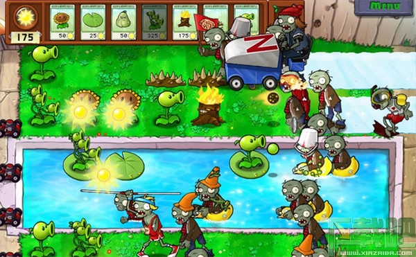 多达50个的冒险模式关卡设定,从白天到夜晚,从天台到游泳池,场景变化多样。