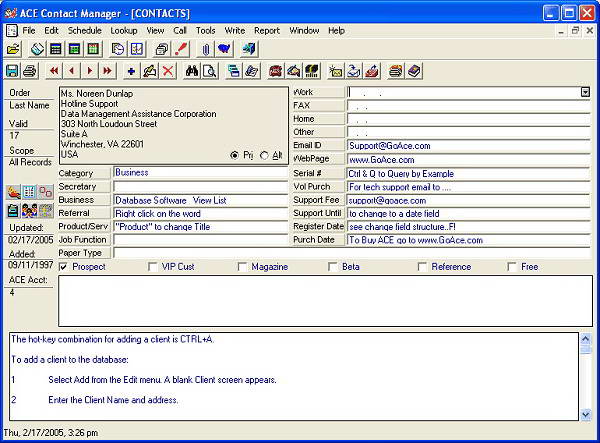 ACE Contact Manager 是一款关系管理软件,允许企业人员访问和收集任何与企业有关联的信息。Ace Contact Manager 提供了一套完整的、附带索引、分组并且按公司编码的地址薄,有时也叫做个人信息管理软件(pim),能列出所有与企业相关的必要信息。它还提供了计划安排、日程制定等工具,为数据的集中化提供了安全保证。