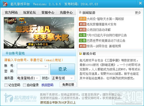 游戏大厅也是游戏中心,游戏平台,集合了大量的各种游戏,或专注于一类游戏的玩家游戏娱乐竟技平台。下载吧为大家推荐最热门最多人玩的游戏大厅大全,qq游戏大厅,联众世界游戏大厅,老k游戏大厅,边锋游戏大厅等。下载游戏大厅,一起玩游戏吧。