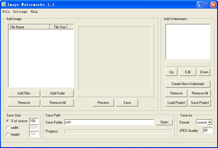 批量进行图片水印添加的工具,用于保护图像版权。能用图片、照片、文档等制作水印,支持大小、颜色、透明、位置等选项。
