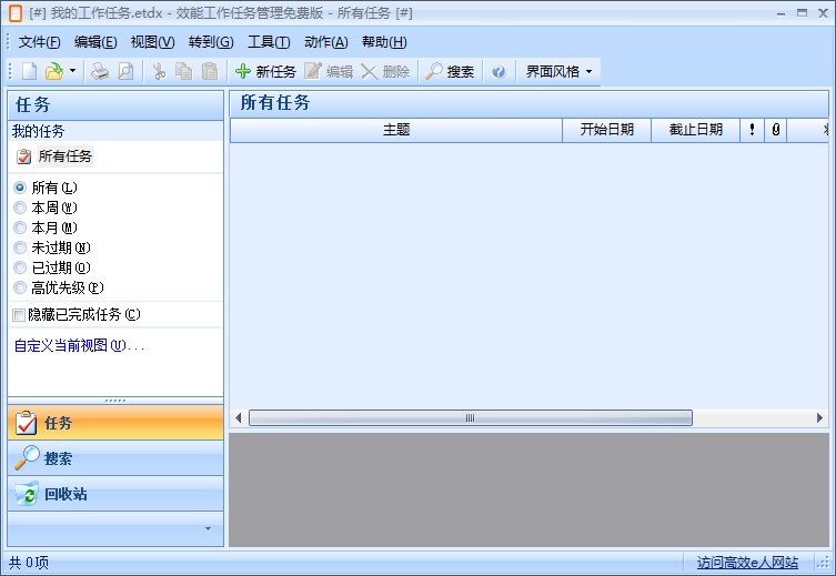 今天、本周、本月该做哪些事情?哪些任务优先级高,哪些任务完成了?效能工作任务管理免费软件帮助您对工作任务进行计划、重要性排序、提醒和进度跟踪。有了她的帮助,您能够遵循“要事第一”的原则,对事情的轻重缓急一目了然。软件界面美观,简便易用,但同样功能强大。您可以设定任务的重要性;可以用不同的颜色标签来区别不同类别的任务。软件提供不同配色方案的 8 种界面风格任您选择!现在就使用效能工作任务管理免费软件来帮助您提高工作效率,体会加薪和升职的喜悦吧