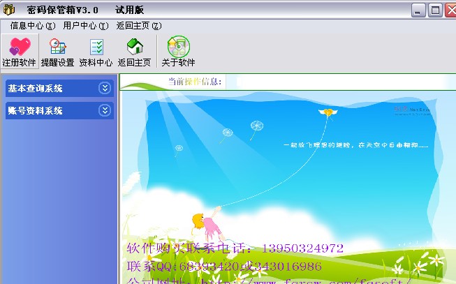 源兴密码保管箱提供了密码保管,通讯录,手机、身份证号码查询以及搜索引挚等多种功能,支持多账户设置是你必备的一个小工具。源兴密码保管箱可用于个人、集体或家庭;用户只用一个用户名即为单用户版;几个人或一个家庭用,各个成员之间也许有需要相互保密的信息,所以作成了多用户版. 本软件的优点在于你只需记住一个用户口令就“记住”了你的所有口令,因为就算你的一些口令忘记了,你也可以查看忘记了的口令,必要时可修改之。