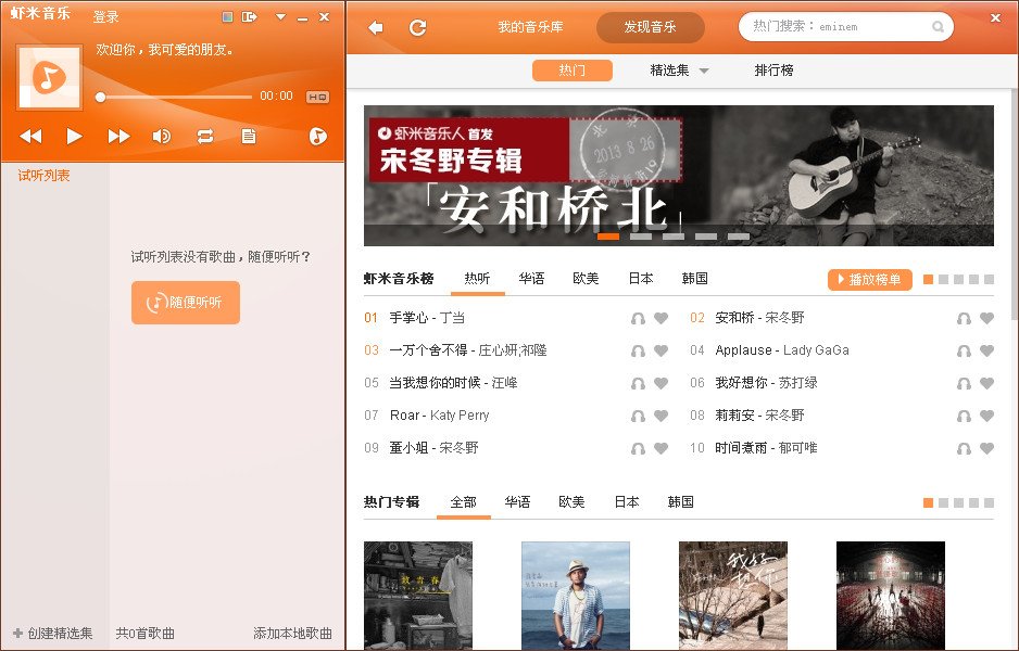 虾米音乐电脑版是一款虾米音乐网出品的音乐播放器。虾米音乐每天为你量身推荐歌单、专辑和艺人,帮你发现更多好听的音乐。虾米音乐播放器拥有简约的设计、舒适的体验、最热门的音乐、最专业的曲库,支持本地音乐和在线高品质音乐播放。延续虾米音乐网的理念,为你提供400万的高品质音乐。体验与实体CD相媲美的高品质。简单化的操作界面,听音乐更简单。