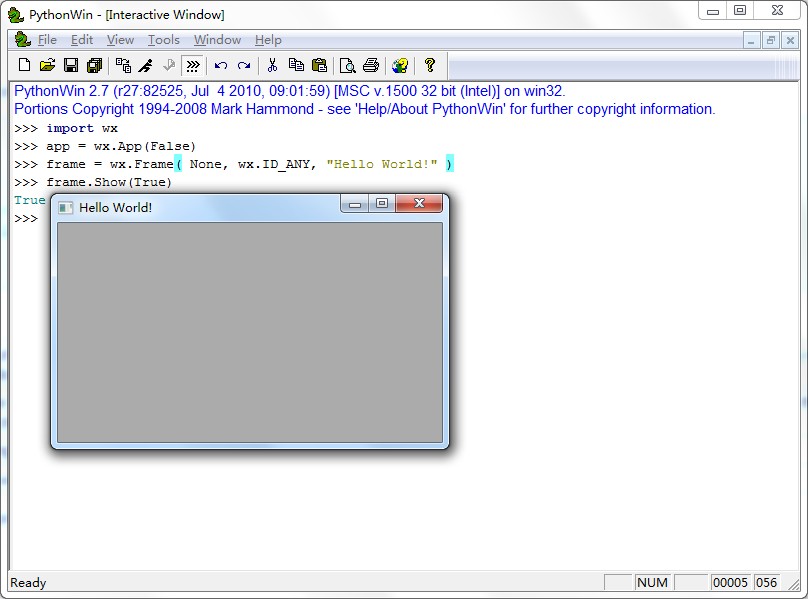 frame = wx.Frame(None, wx.ID_ANY, "Hello World") # A Frame is a top-level window.