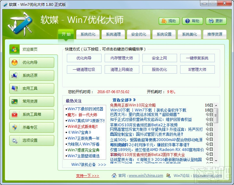 • Windows7优化大师1.06正式版升级日志(2009年9月30日)