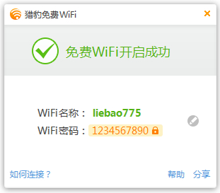 猎豹免费WiFi可以一键将电脑中的网卡变身Wi-Fi,从此手机也可享受宽带速度,不再浪费1分钱流量。猎豹免费wifi校园神器在实际评测中,连通率达到国内第一,支持百兆宽带信号传输,这一点彻底超越了国内众多同行,成为今年最热Wi-Fi设备之争中的一匹黑马。