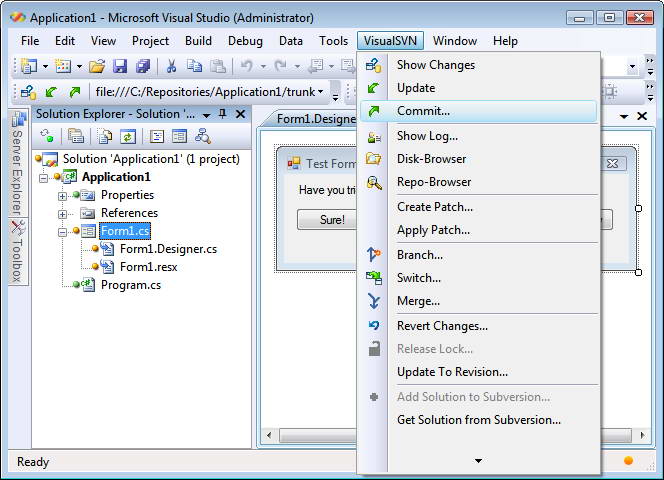 VisualSVN是一个Visual Studio插件,集成Subversion和TortoiseSVN无缝地到Visual Studio 。 部署VisualSVN, 所有的开发人员将使用Subversion自信和有效地管理和保护您的组织的工作成果。 Subversion是新一代的版本控制工具,不仅可以管理程序源代码,也可以应用于其他协作管理数据的工作,例如使用Subversion来合作写乐谱,美工用来共同作图。