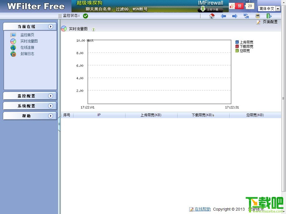 WFilter Free是WFilter的免费版本,可以实现基本的网络管理,包括屏蔽网站、禁止P2P下载、禁止视频、实时流量监控等功能。你只需要在一台电脑上安装WFilter Free就可以监控管理整个局域网。