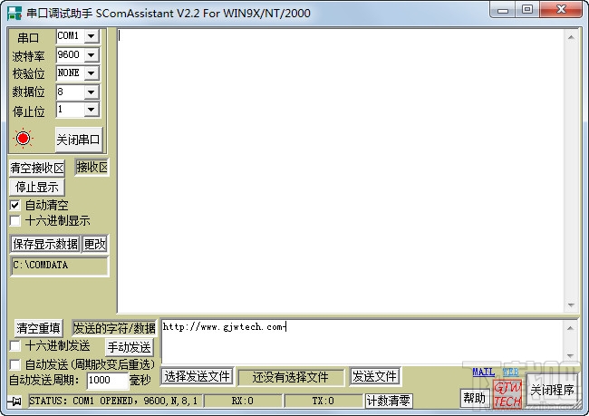 串口调试助手是一个很好而小巧的串口调试助手,支持常用的300-115200bps波特率,能设置校验、数据位和停止位,能以ASCII码或十六进制接收或发送任何数据或字符(包括中文),可以任意设定自动发送周期,并能将接收数据保存成文本文件,能发送任意大小的文本文件。