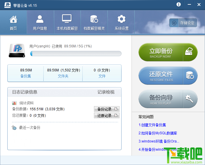 下载吧提供攀普科技公司发布的攀普免费云备客户端正式版,攀普免费云备客户端界面清新简洁友好,用户能在较短的时间内掌握软件的使用。攀普免费云备客户端具备强大、完整的加密备份和还原功能,是一套集数据备份和应用容灾于一体的备份软件产品,能满足用户的需要。