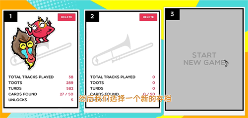 1、进入游戏后,玩家需要选择一个存档继续游戏,亦或是开启一个新的存档开始游戏;
