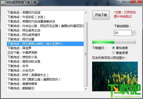 提醒注意:微软定期会添加背景图片,因此如果你想保持本地图片与微软图片库同步,每周启动本程序进行一次下载即可,已经下载过了的图片不会再次下载。