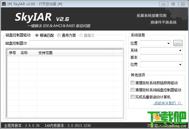 下载吧提供的skyiar主要用于解决系统部署(系统安装)过程中,由于磁盘控制器ide、ahci、raid工作模式所带来的系统部署困难问题。同时,skyiar还可以有效解决“换硬件不换系统”、“ide改ahci”等与磁盘控制器工作模式息息相关的问题。skyiar具备“自动检测”、“自动筛选”、“一键完成”等特性,将原本复杂的磁盘控制器驱动问题简化为“一键操作”,极大的提高了技术人员的工作效率,比较大程度的减少了因磁盘控制器驱动造成的系统部署蓝屏、宕机问题。