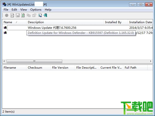 下载吧提供的winupdateslist 可以显示所有已安装在你的本地计算机上的 windows updates(service packs 和 hotfixes)。对于hotfix补丁,该软件还可以显示这些补丁所更新的文件列表。另外,它还允许你立刻打开微软网站上的 web 链接来提供更多关于补丁的信息,卸载更新,复制更新信息,或保存信息到txt/html/xml文件。