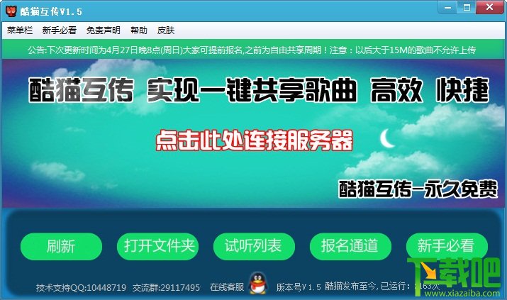 酷猫互传是根据酷狗歌曲收录规则而编写的酷狗音乐共享入库平台,实现一键共享歌曲/翻唱曲/Mc作品,一键共享到用户电脑酷狗歌曲存放目录