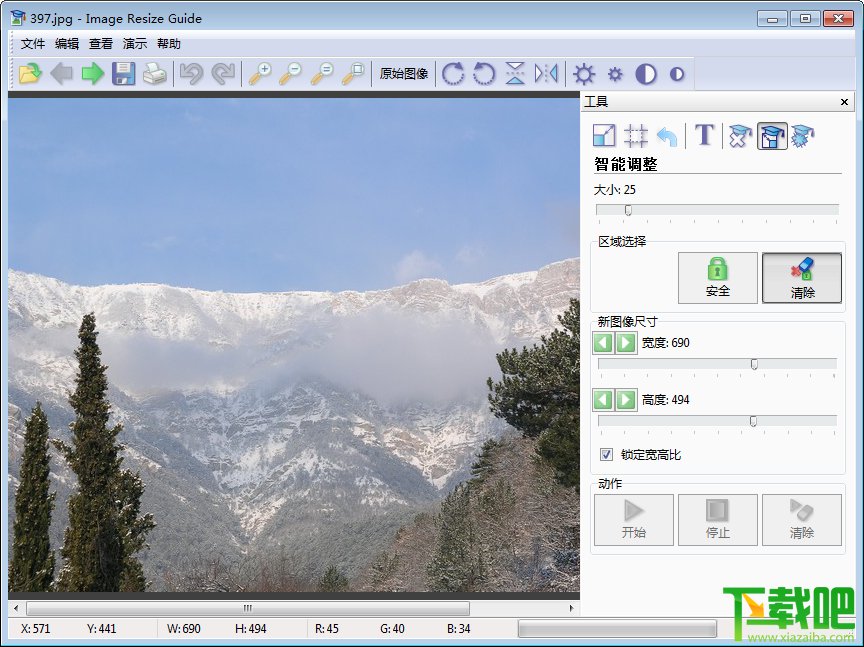Image Resize Guide可以调整图像的尺寸和长宽比,对图像中的物体进行智能移除而不留痕迹.只需点击几次按钮,软件会自动帮你完成余下的工作。对雪景,水或绿树背景的图片效果出众,重要地方可特殊标记.通过移除图像中多余或不必要的部分,完美保留重要的部分来更改图像大小.您可以通过逐步动画演示样本来学习整个处理的过程.软件的智能移除功能类似于 Photoshop CS4 的识别技术。软件虽小,功能却不简单!