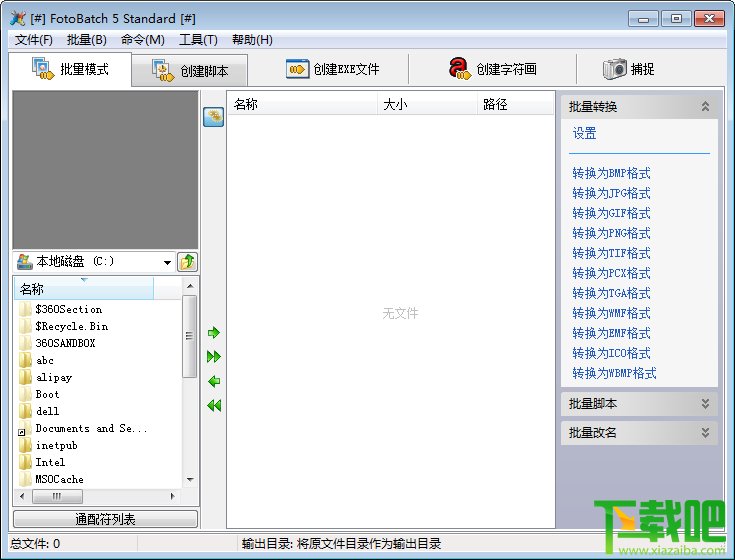 FotoBatch(原名:魔法转换)是一个功能强大的图像批量转换、批量处理软件。使用它您可以制定图像处理脚本,然后根据脚本对图像进行批量转换。FotoBatch提供超过30个图像处理脚本命令,比如调整图像大小、调整饱和度、增加半透明水印等。同时它还能创建可自动播放的EXE文件和PDF文件并可与您的家人朋友分享。它还支持WINDOWS右键菜单进行转换操作,并可以自定义WINDOWS右键菜单。它支持目前所有流行的图像格式,输出格式为:bmp、jpg、gif、png、tif、pcx、wmf、emf、tga、ico、wbmp,还包括txt、rtf、htm等字符画格式。